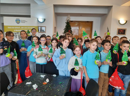 În spațiosul foaier al Teatrului “Toma Caragiu” și sub atenta îndrumare a artiștilor plastici ai Casei de Cultură “I.L. Caragiale” a Municipiului Ploiești, zeci de copii ploieșteni au participat cu zâmbete și voioșie la ateliere creative dedicate sărbătorilor de iarnă.