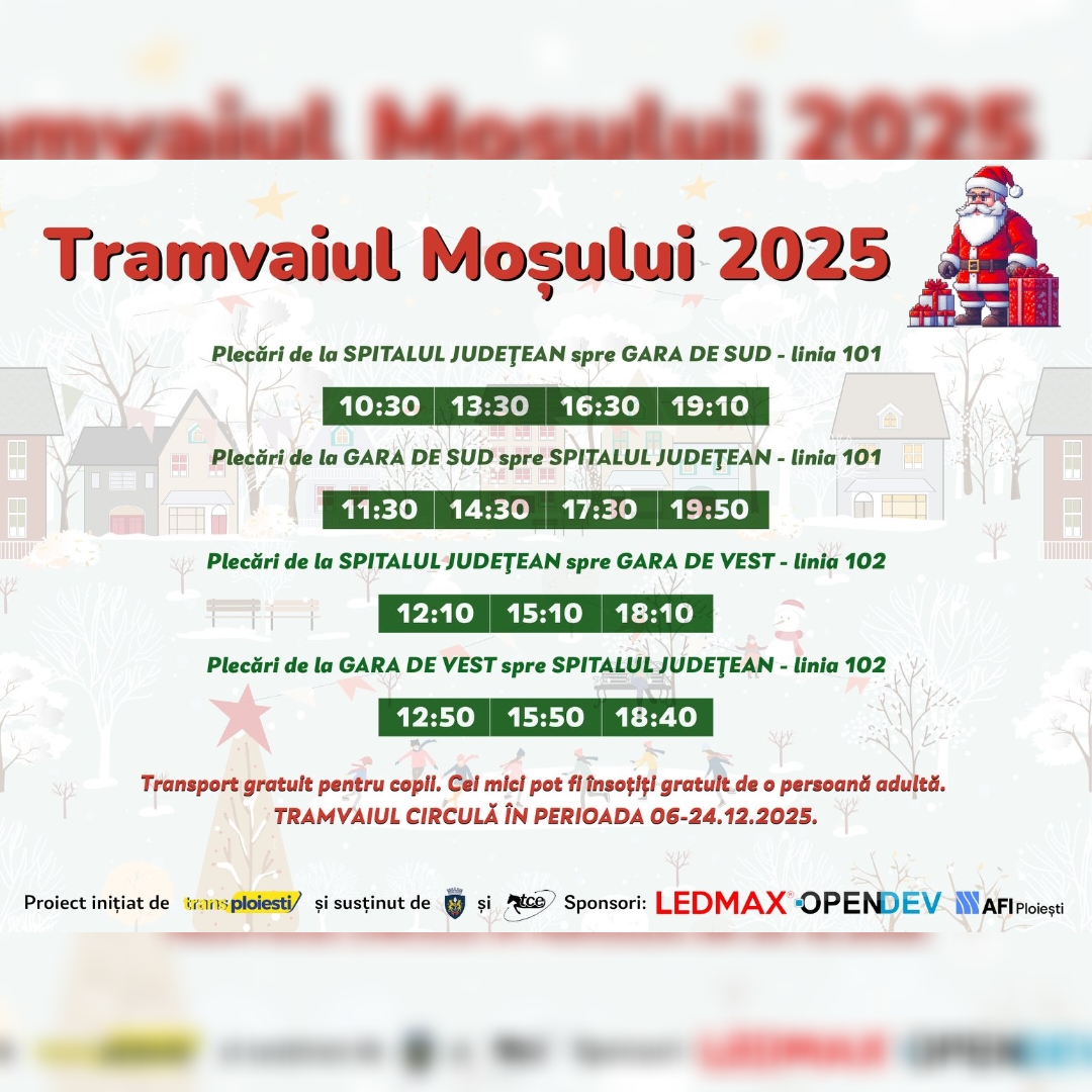 17 DECEMBRIE 2025 Modificări ale programului de transport public local în municipiul Ploiești, începând cu 1 ianuarie 2026!