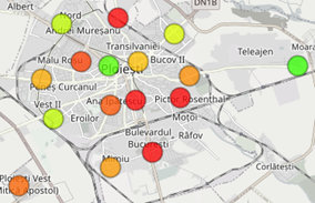 stațiile care monitorizează parametrul ales; De ex. – dacă se va alege „Formaldehida”, nu va fi afișată